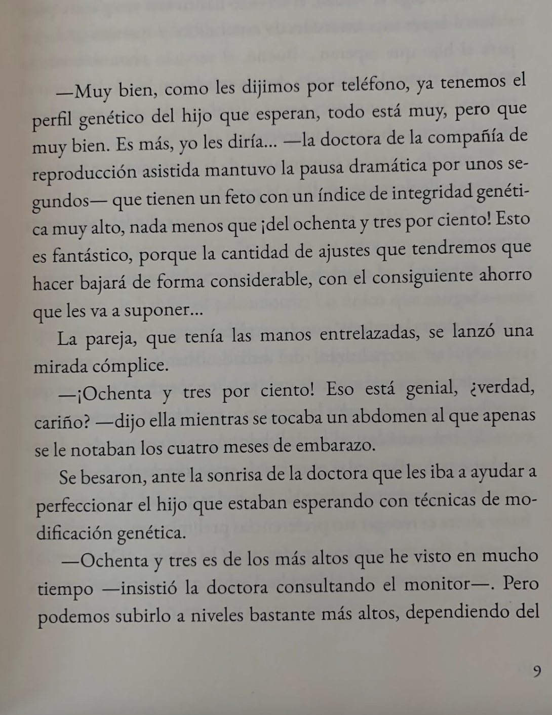 El libro es una versión renovada de “Futuros Imperfectos”, una colección de relatos interconectados acerca de un futuro cercano en el que la tecnología ha introducido cambios que afectan en el día a día de las personas: una pareja debate con el médico como van a manipular genéticamente al bebé que están esperando, una hija que descubre que sus padres han sido sometidos a una operación de cambio de personalidad, los nietos que tratan de sonsacar los secretos del cerebro de la abuela que acaba de fallecer, unos padres que descubren que el novio de su hija es más mayor de lo que aparenta…