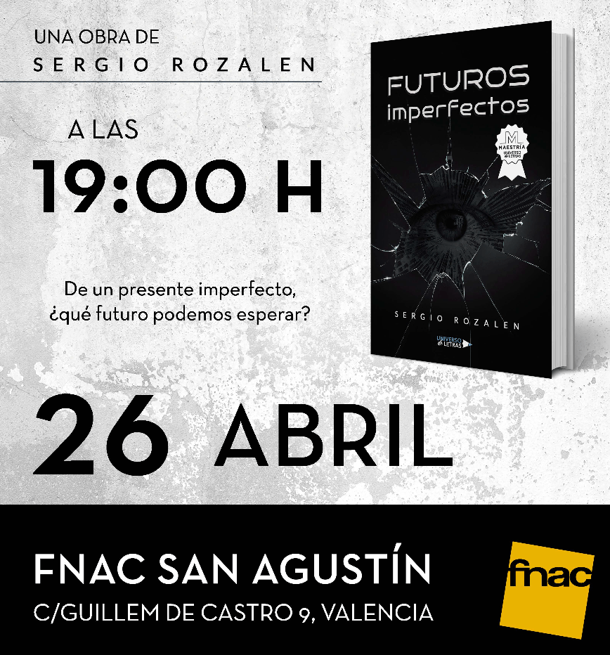 Un poco de autobombo por este rincón. Resulta que en poco más de dos semanas presento el libro Futuros Imperfectos, el 26 de abril, a las 19:00 h en el FNAC de Valencia.